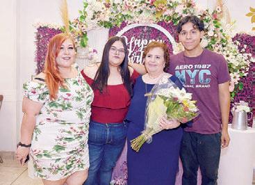z Su concuña Lucía Buentello fue la organizadora del evento. z Sara, Yazmín, Nancy y Rosalinda acompañaron a Erika.