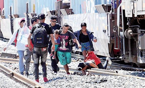 Un grupo de más de un centenar de migrantes que se había quedado en el municipio de Frontera subió ayer a los vagones de un tren de carga pesada de Ferromex para viajar a Piedras Negras, entre ellos una mujer que al intentar subir se cayó y fue ayudada por sus compañeros. Estos migrantes eran parte de la caravana de 3 mil que llegaron el lunes arriba y dentro de vagones, los cuales quedaron varados por más de 12 horas en los patios de Ferromex luego de que se detuvo el tren, pero no lo volvieron a abordar cuando siguió su marcha por la tarde hacia la frontera norte de Coahuila. Por diferentes cuestiones, los indocumentados decidieron quedarse en la Ciudad del Riel para recibir atención en el albergue de la parroquia Verbo Encarnado de la colonia Occidental y en el departamento de Protección Civil, donde se les dio agua y alimentos.