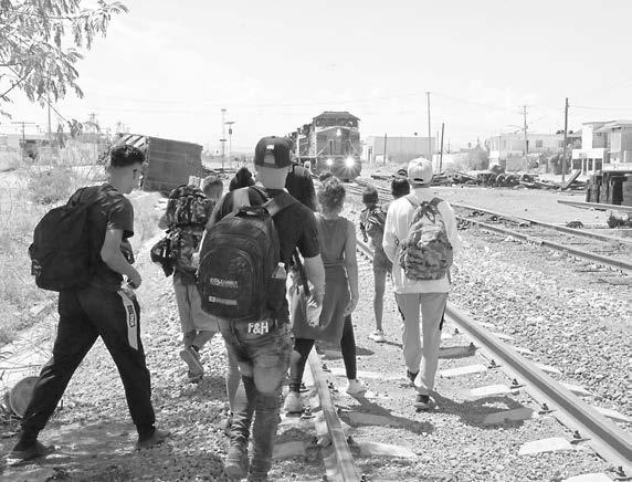 personas que caminaban cerca de las vías del ferrocarril, ya que estaban visiblemente contentos porque estaban a menos de 200 kilómetros de cumplir con su objetivo de cruzar al vecino país para mejorar su calidad de vida.