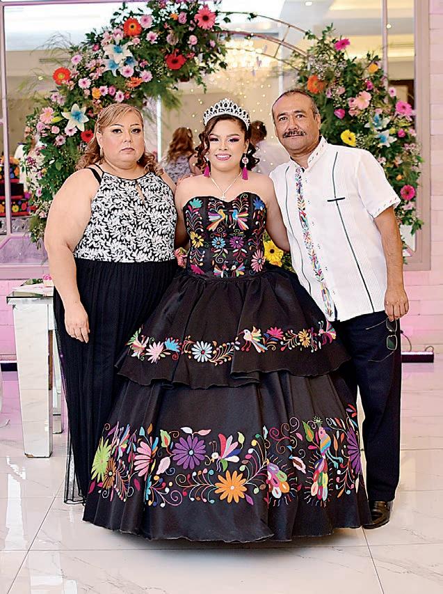 da debutante. Concluida la misa y acompañada siempre de sus papás Marco Antonio Canales y Luz Alicia Rivera, la quinceañera se trasladó a un salón de la ciudad para celebrar en grande su aniversario. Hermosos detalles llenos de folklor dieron la bienvenida a cada uno de los invitados, quienes colmaron a Grecia Alizee de felicitaciones así como de los mejores deseos.