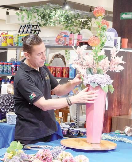 En el atrio del segundo piso de la tienda departamental Cimaco se llevó a cabo el taller “Arreglos florales de primavera”, el cual fue impartido por el diseñador floral Juan Roberto Rivera Almaguer, quien tiene una amplia trayectoria na-