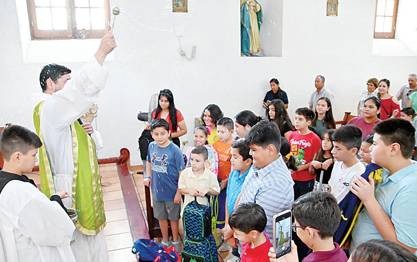 Como preámbulo al inicio de clases, sacerdotes de templos católicos de Monclova realizaron la tradicional bendición de las mochilas durante las misas dominicales, a las que acudieron infantes de todas las edades.