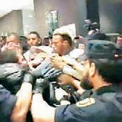 Aunque Belinda se mostró amable, en las imágenes se ve que el hombre la tocó de forma indebida, además, ella señaló que fue lesionada por él.