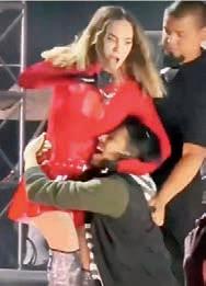 Belinda fue sorprendida durante un concierto cuando un fan burló la seguridad, se subió al escenario y se le fue encima.