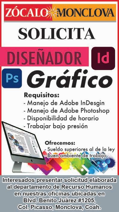 Solicito personal para cubrir puestos de: *Oficial de seguridad (hombres) con o sin experiencia, edad de 25 a 55 años, secundaria terminada, disponibilidad para cubrir zonas de Monclova y Frontera, rolando turnos. *Radio operadoras (mujeres) secundaria terminada, rolando turnos. Interesados presentarse en calle: V. Carranza esquina con Bravo, 2° piso local 15. (En contra esquina del estacionamiento de Merco) horario: de lunes a sábado de 9:00 a 18:00 hrs.