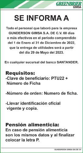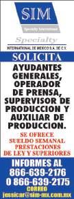 COMPAÑIA CONTRATISTA SOLICITA PERSONAL, AYUDANTE GENERAL, PERSONAL DE LIMPIEZA. COMUNICARSE AL TEL. 866-257-46-97. (58228 : 21-May : 29-May)