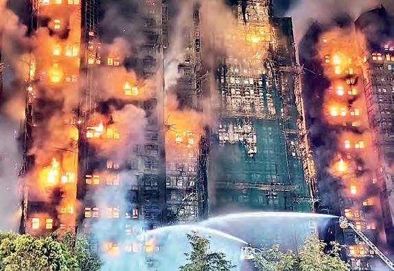 aún hay focos en varios pisos superiores de los rascacielos afectados, ubicados en el complejo residencial de Wan Fuk Court. Asimismo, las autoridades de Hong Kong han anunciado que las banderas ondearán a media asta en los edificios oficiales, así como la cancelación de todos los actos de celebración oficial en memoria de las víctimas del enorme incendio, según ha recogido el diario ‘South China Morning Post’. El jefe del Ejecutivo de