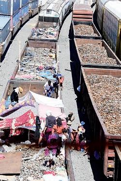 z Con colchas y sabanas migrantes improvisaron techos en góndolas del ferrocarril.