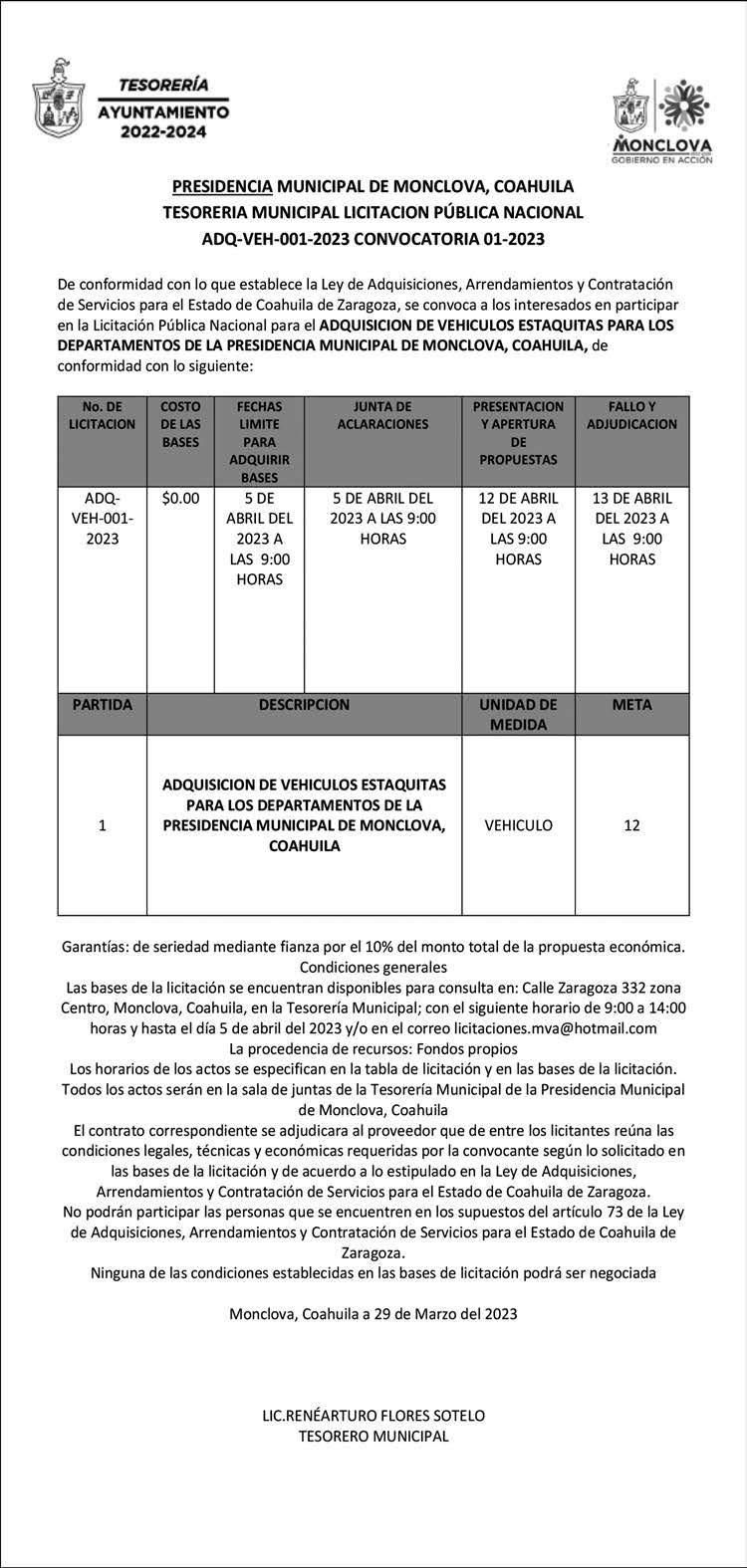 Solicito personal para cubrir puestos de: *Oficial de seguridad (hombres) con o sin experiencia, edad de 25 a 55 años, secundaria terminada, disponibilidad para cubrir zonas de Monclova y Frontera, rolando turnos. *Radio operadoras (mujeres) secundaria terminada, rolando turnos. Interesados presentarse en calle: V. Carranza esquina con Bravo, 2° piso local 15. (En contra esquina del estacionamiento de Merco) horario: de lunes a sábado de 9:00 a 18:00 hrs. Teléfono: 866-632-35-36, y 866-17777-96 celular 866-178-55-63 (58102 : 25-Mar : 09-Apr)