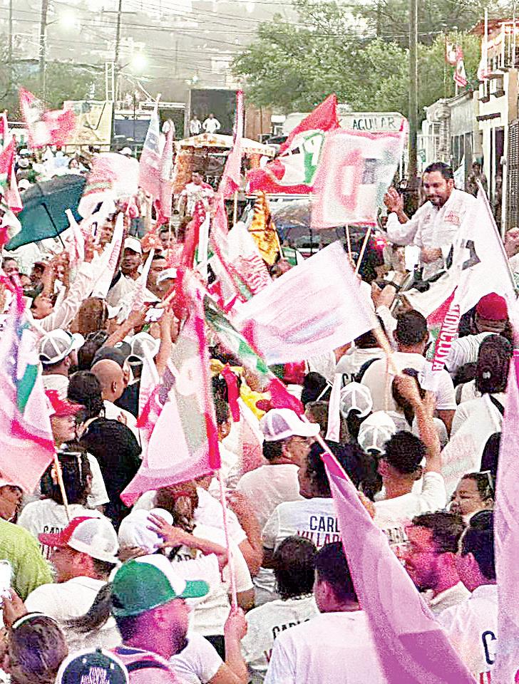 z A pesar de la lluvia, cientos de militantes del PRI llegaron para el cierre de campaña de Carlos Villarreal que pidió resguardarse para evitar accidentes.