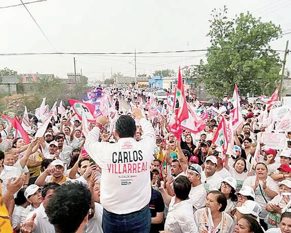mer lugar de las preferencias de electorales y que la principal encuesta es el 2 de junio. El dirigente estatal del PRI, Carlos Robles, y la dirigente estatal del PRD, Mary Thelma Guajardo, viajaron hasta Monclova, para acompañar a Carlos Villarreal a su cierre de campaña, evento que finalmente se tuvo que cancelar por la lluvia. n Local 3A
