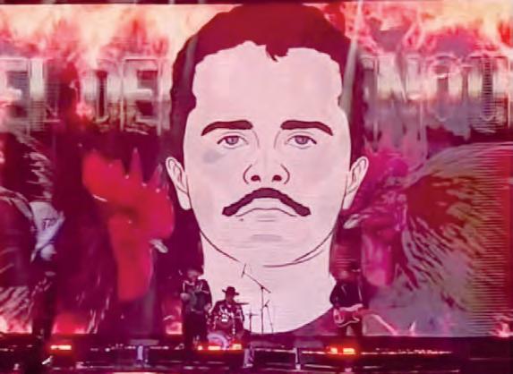 bado por la noche se proyectaron imágenes de Nemesio Rubén Oseguera Cervantes, alias “El Mencho”, líder del Cártel Jalisco Nueva Generación (CJNG). El hecho ocurrió durante el concierto Los Señores del Corrido, protagonizado por la banda sinaloense Los Alegres del Barranco, quienes interpretaron un repertorio de narcocorridos ante un recinto completamente abarrotado.