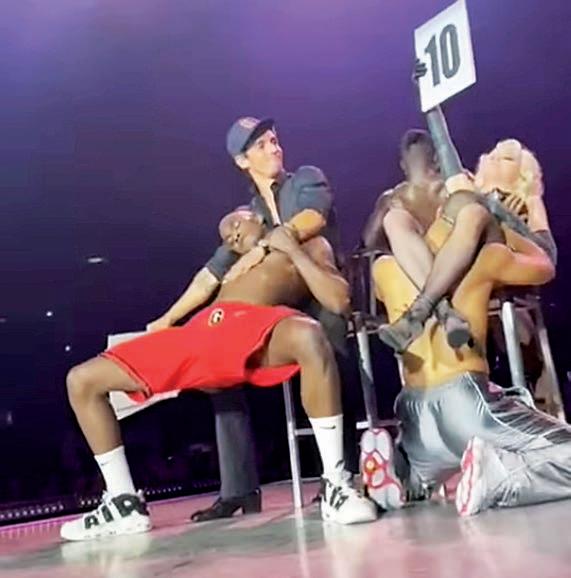 mentos subidos de tono que Madonna realizó con su cuerpo de baile, asegura que fueron sometidos a ver “pornografía” y a ver a mujeres en topless, lo que calificó como una falta de respeto hacia ellos, los fans, y un espectáculo extremadamente sexual. Madonna enfrenta la demanda por incumplimiento de contrato escrito, tergiver-