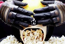 Con la épica melodía de “Odisea en el Espacio”, se va mostrando cada detalle del elegante bote negro con una tapa 3D con la cara del súper héroe con la boca abierta para que las personas vayan tomando las palomitas, mientras se simula al mismo tiempo que el personaje las está comiendo.