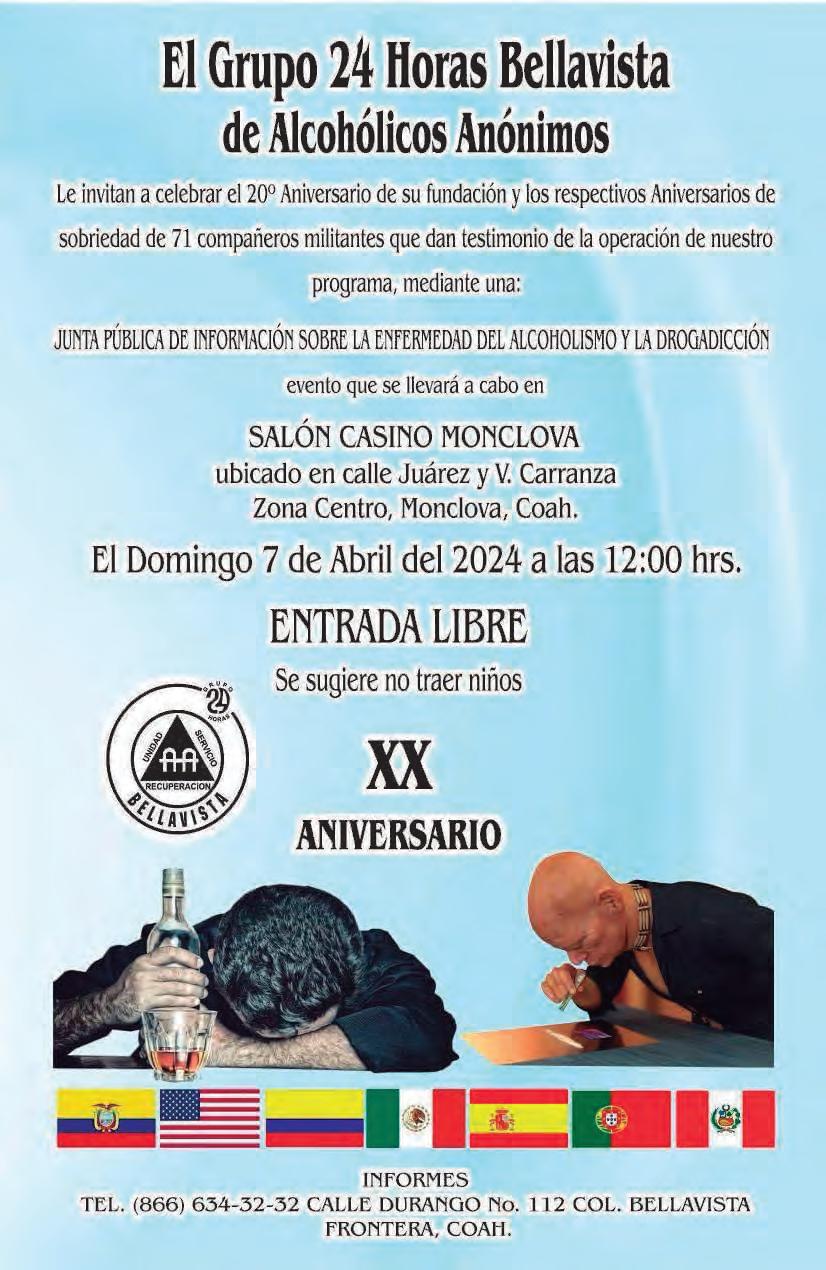 @PeriodicoZocalo Periodico Zócalo zocalomonclova El clima en la región Hoy MÁX 30° MIN 17° Domingo 7 de abril de 2024 | Año XXVI | Número 9307 | 5 secciones | www.monclova.com 10 PESOS años
