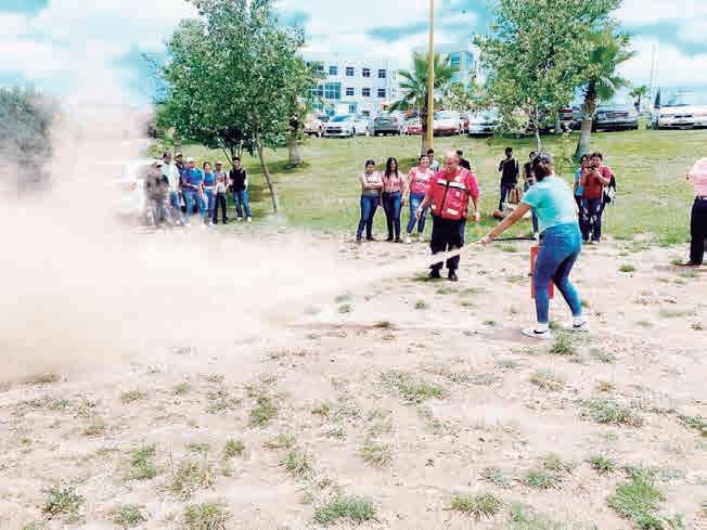 Fue este martes cuando se llevó a cabo el evento en la sa la audiovisual de la institución con la participación de docen tes y alumnos, misma que cul minó con una práctica en el uso del extintor en los patios del plantel, todo debidamente supervisado por directivos y el propio titular de Rescate Múzquiz y sus colaboradores.