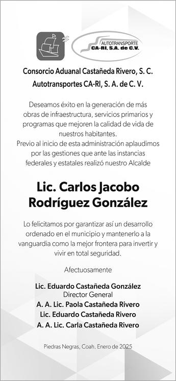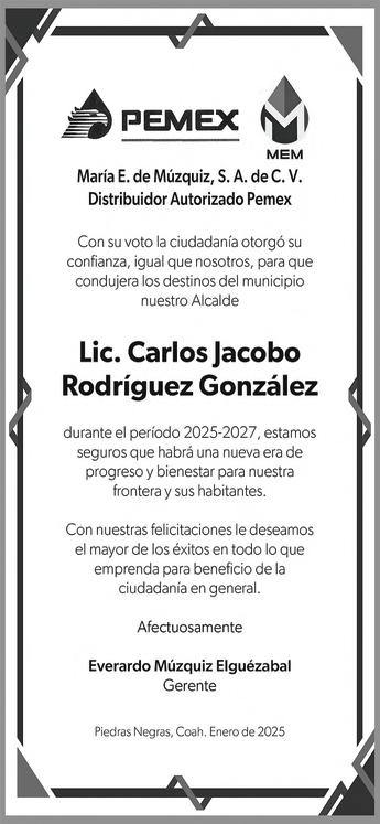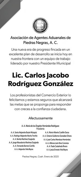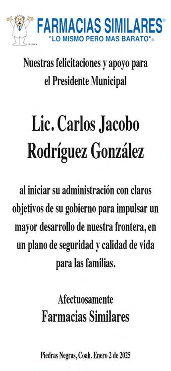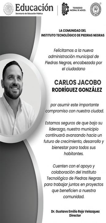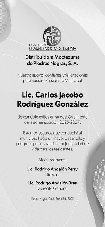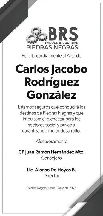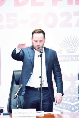 Jacobo Rodríguez rindió protesta como alcalde de Piedras Negras en una sesión de Cabildo en donde se le vio fuerte, preparado y con mucha confianza, además de compromiso por lo que viene, la tarea que le toca de gobernar por los próximos tres años el municipio de Piedras Negras, la ciudad más segura de la frontera y una de las más seguras de to-