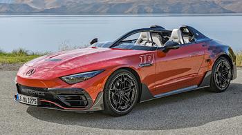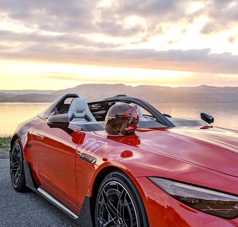 tian Werner ganó la carrera Targa Florio en Sicilia, victoria por la que este novedoso modelo agrega un 10 en el alerón trasero. Pasando de la remembranza a la innovación, Mercedes-AMG PureSpeed es un auto completamente abierto, sin techo ni parabrisas, silueta baja, capó largo optimizado aerodinámicamente, musculosos hombros, elementos de fibra de carbono visibles y aerodinámicos en la parte inferior del coche y una parte frontal muy baja con