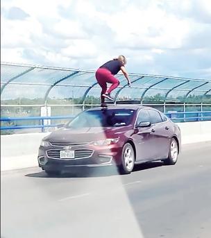 Una mujer fue viralizada ayer por la tarde, al ser captada encima de un Chevrolet Malibú, golpean do a patadas el cofre, mientras el vehículo iba en movimiento sobre el Puente Internacional 2 en Ea gle Pass, y con rumbo a Piedras Negras. Elemen tos de la GN los bajaron del auto para controlar la situación, aunque ninguno fue detenido.