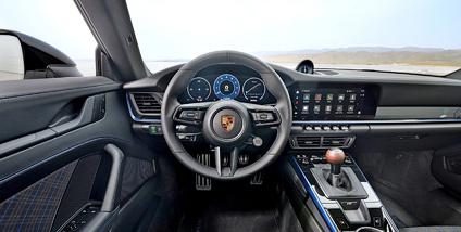 El Porsche 911 Carrera T se distingue por su ligereza registrando un peso total de 1,478 kilogramos, 40 kg menos en comparación al modelo 911 Carrera actual. Su diseño minimalista traza líneas estilizadas con múltiples rejillas en color negro en la tapa trasera y con un par de emblemas en los postes laterales simulando una caja de cambios. Además, se colocaron neumáticos de aleación de 20 y 21 pulgadas, una doble salida de escape y un amplio difusor para mejorar el tema aerodinámico. Cuenta con un sistema de frenos de disco de 350 milímetros con seis pistones en la zona delantera. Otro punto a destacar en este deportivo es la implementación de una caja manual de 6 velocidades, encargada de dirigir la fuerza a las ruedas traseras. El motor que utiliza es un Bóxer de 3.0 litros biturbo que entrega casi 400 caballos de fuerza y 331 libras pie de torque. Los 100 kilómetros por hora los puede recorrer en 4.5 segundos y alcanza una velocidad máxima de 295 km/h.