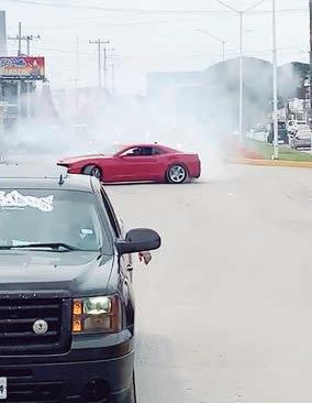 tos, pero lo hizo con un Chevrolet Camaro color blanco, en el cual hizo “donas” y arrancones pero en otra parte del recorrido.