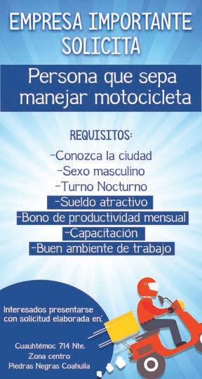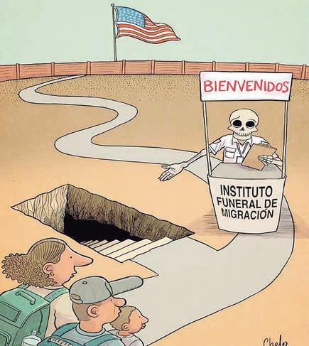 ¿En qué se parece un político a una computadora? en que piensa y hace todo, pero si no lo programas, no sirve para nada. ANDAN CON un brazalete los exalcaldes de Monclova y de Parras, César GARCÍA y Ramiro PÉREZ ARCINEAGA. NO deberían hacer tan largo el juicio de averiguación y obligarlos a pagar o reparar el daño que hicieron. Dicen que era tanto el descaro del exalcalde Parras, que todavía en diciembre a unos días de terminar su gestión giró un cheque por $500 mil pesos para pagarse su “aguinaldo”. +UN PASEANTE entró en una tienda de antigüedades y después de ver los artículos observó la figura de una rata, en bronce, muy realista. No tenía etiqueta con el precio, pero decidió que le gustaba y que la compraría. Llama al dueño de la tienda y le preguntó. ¿Cuánto pide por esta rata de bronce? -Y el propietario le dijo: 12 euros por la estatua y 500 euros por la historia, -Me llevo sólo la rata, pero no me interesa la historia, salió de la tienda y caminando calle abajo, observó que le empezaban a seguir una cierta cantidad de ratas reales, vivas, que se salían de los escondrijos y las alcantarillas. El hombre se sintió desconocer todo y empezó a caminar más rápido. Pero unas calles más adelante la cantidad de ratas vivas que le seguían se convirtió en una marea de animales chillando y con aspecto amenazador, salió corriendo en dirección al mar y mirando hacia atrás vio que las ratas podían contarse ahora por millones ¡y que corrían más y más rápido. El hombre preso del pánico se acercó al mue lle y tiró al mar la figura de la rata. Asombrosamente las mi llones de ratas saltaron al agua y se ahogaron todas. El hom bre volvió a la tienda de anti güedades y el dueño al verlo: ¡Vaya, vaya, creo que ha vuel to para saber la historia! ¿no? -No, le dijo el hombre, lo que quiero saber es si tiene usted también figuras de políticos y banqueros. + franciscotrevinog@gmail.com Facebook: @ftrevinogranado