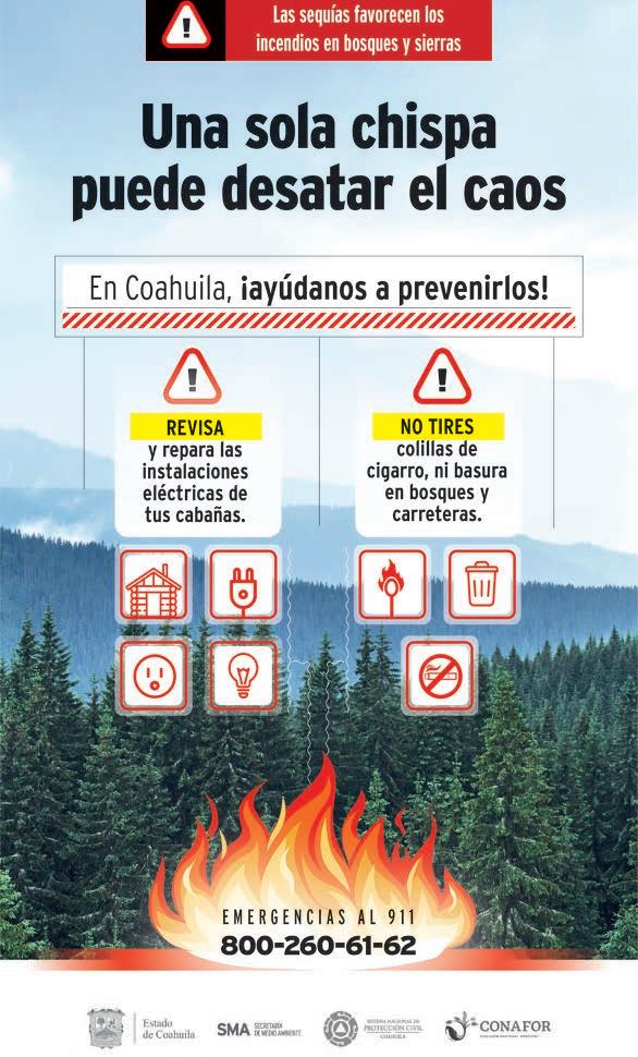 El Gobierno Municipal de Salti llo, a través de la Dirección del Medio Ambiente y Desarrollo Sustentable, en conjunto con la Dirección de Protección Civil y Bomberos, hizo una serie de re comendaciones a la población para prevenir los incendios fo restales.