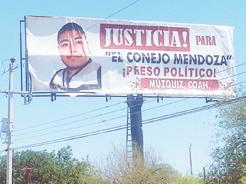 z Familia del “Conejo” Mendoza, colocan espectacular para pedir justicia por él.