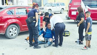 El percance ocurrió cuan do el vehículo Dodge Cali ber no respetó el derecho de vía del motociclista y preten día cruzar el bulevar Repúbli ca cuando el motociclista cir culaba hacia la parte norte de esta vialidad, lo que provocó que se impactara en el costa do derecho del vehículo. Elementos de Bomberos auxiliaron con la ambulancia de esta corporación al mo tociclista quien fue traslada do con probable fractura en piernas y lesiones en tórax y cabeza.