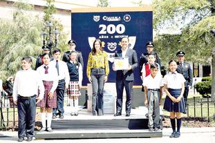 Jiménez la ceremonia en la que se depositó la cápsula del tiempo “200 Años, 200 Historias”, que se abrirá dentro de 20 años