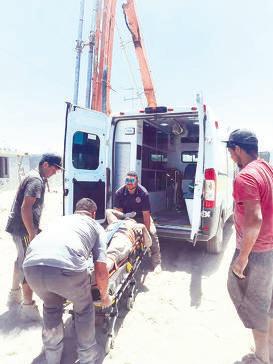 Personal de Protección Civil y Bomberos de Allende brindaron los primeros auxilios a un trabajador de una empresa de materiales para la construcción, que cayó de una altura de cuatro metros cuando entregaba cemento a un cliente, informó el titular del departamento Hugo Martín Zubeldia Cantú.
