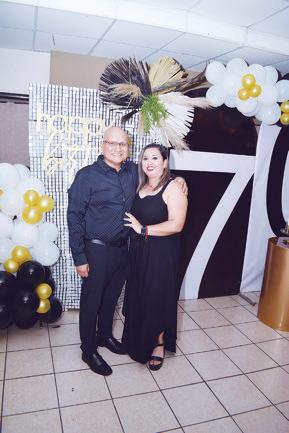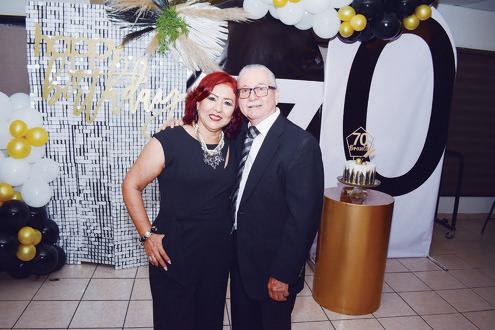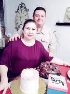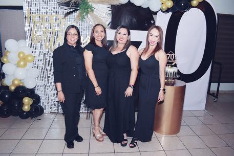 z Nora Adriana Hidalgo de Huerta de manteles largos por su cumpleaños.