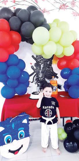 El cumpleañero fue sor prendido en su clase matu tina de karate, con su pas tel favorito, las tradicionales Mañanitas y muchos abra zos por parte de sus com pañeros y amiguitos así co mo por su sensei y personal del dojo, con los que disfru tó de momentos muy diver tidos.