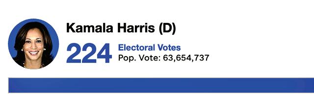 La candidata que suplió a Joe Biden no logró, al menos en el voto popular, emular lo que históricamente ocurre con los aspirantes “azules”, que conquistan al menos el voto popular, del cual hasta anoche el republicano sacaba ventaja de más de 5 millones.
