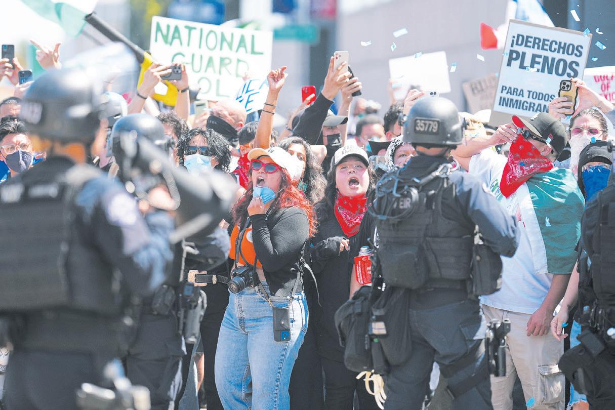 turbios: “se restablecerá el orden, los inmigrantes indocumentados serán expulsados y Los Ángeles será libre”, dijo. Al menos 22 gobernadores demócratas condenaron la decisión del presidente Trump de desplegar a la Guardia Na- cional en Los Ángeles. También, la presidenta Claudia Sheinbaum se pronunció al respecto, asegurando que con la violencia no se atiende el fenómeno migratorio y llamó al diálogo.