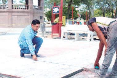 z Los avances de la remodelación de la plaza principal de Allende son supervisados por funcionarios.