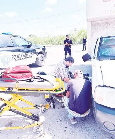 quienes atendieron al motociclista que terminó policontundido por lo que tras realizar una valoración médica, lo trasladaron al área de urgencias del Seguro Social. Elementos de la Policía municipal de la localidad, así como de la Policía Estatal acudieron al lugar del accidente para tomar conocimiento entre la unidad de dos ruedas y la camioneta que se atravesó. El accidente se registró cuando el motociclista se desplazaba por la arteria estatal y el otro conductor se desplazaba en sentido contrario, por lo que intentó ingresar a la colonia San Luis, sin respetar el derecho de vía del conductor de la unidad de dos ruedas