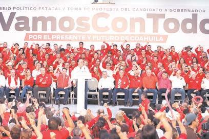 En Torreón, Manolo Jiménez rindió protesta como candidato del PRI a la gubernatura y ahí ante militantes, consejeros políticos, familia y su equipo de trabajo, aseguró que está preparado para llevar a Coahuila al siguiente nivel y encabezar el gobierno más ciudadano… Tras destacar que en la contienda interna obtuvo más de medio millón de votos, dijo que trabajará por las familias, las mujeres, los jóvenes, los trabajadores y los adultos mayores para que haya un desarrollo parejo, con igualdad de género y por una mejor calidad de vida… Dijo que en este equipo se trabaja con unidad, echados para adelante, porque queremos a nuestro estado y no aceptamos a personajes que quieren venir a transformarlo en un estado fallido como ya lo han hecho en otros estados…