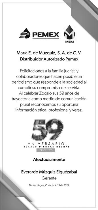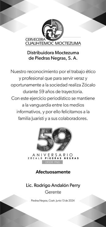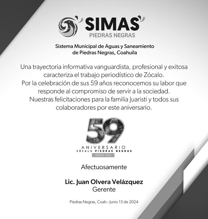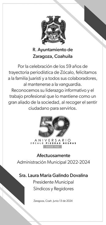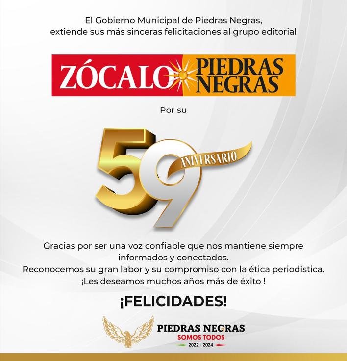 Grupo Zócalo, periódico Zócalo Piedras Negras, el contador Francisco Juaristi Santos y todo el gran equipo conformado por periodistas, editores y colaboradores estamos de manteles largos en el festejo de 59 años de vida periodística, casi seis décadas, casi seis décadas de informar en Piedras Negras, Región Carbonífera y Texas…