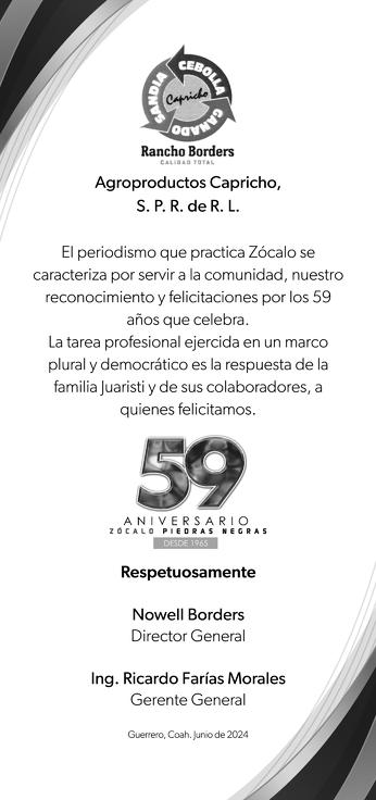 editorial 1|06|2024 2 regional 2E Carbonífera ZÓCALO PIEDRAS NEGRAS Jueves 13 de junio del 2024