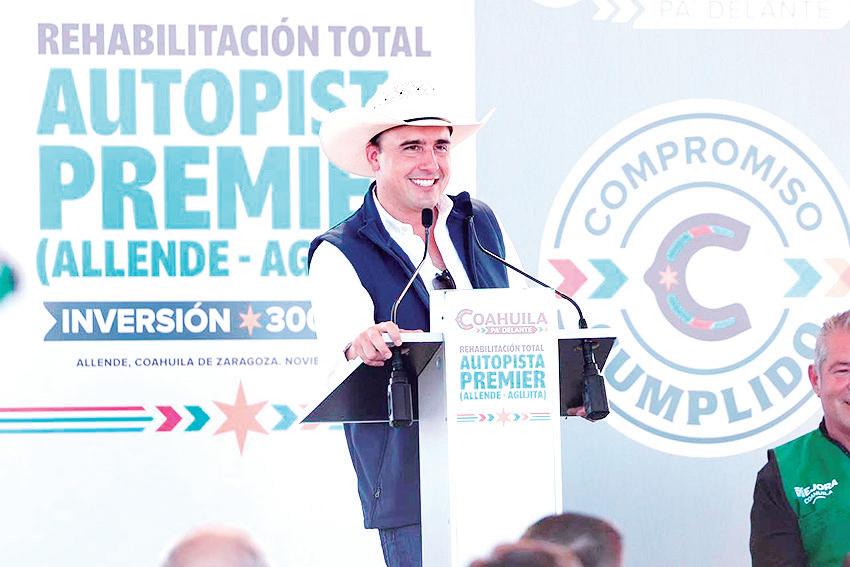 Al destacar que es un compromiso cumplido con empresarios, transportistas y familias de las regiones Norte y Carbonífera, el gobernador Manolo Jiménez Salinas entregó ayer la rehabilitación de los 52 kilómetros de la autopista Premier, con una inversión de 300 millones de pesos. Durante la entrega de los trabajos, el mandatario estatal reiteró que esta era una pro mesa realizada en su campaña que vendrá a mejorar la com petitividad de Coahuila. “Ya quedó entregada la re habilitación de la autopista Premier Rosita-Allende, una obra insignia que fortalece la conectividad de la carretera 57. Con 300 millones de pesos y 52 kilómetros modernizados, hacemos de nuestras carre teras las más seguras de Mé xico. ¡Un compromiso más cumplido!”, destacó Jiménez Salinas quien señaló que se va a seguir trabajando y coordi nados con la Federación y los municipios.