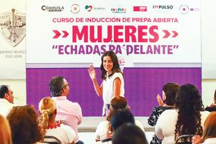 Paola Rodríguez López, presidenta honoraria de Inspira Coahuila, informó que el programa “Mujeres Echadas pa’delante”, es un programa insignia del Gobierno de Coahuila que busca, entre otros objetivos, lograr el empoderamiento educativo de las mujeres coahuilenses con la intención de que realicen sus estudios de nivel preparatoria de manera gratuita.