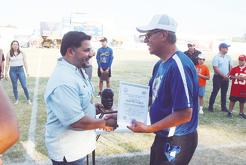 z En su mensaje, Pepe Díaz destacó los logros deportivos de Marcelo Juárez en la Liga Mexicana de Béisbol.