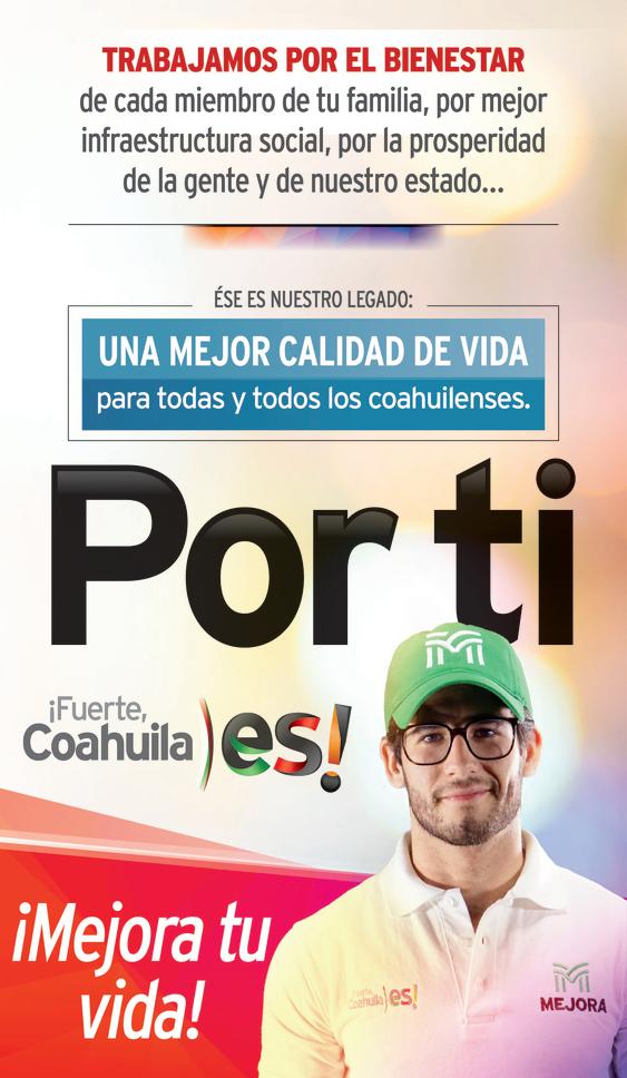 Lunes 14 de agosto del 2023 | Año LIX | Número 20,938 | 5 secciones | www.zocalo.com.mx $10.00 @PeriodicoZocalo Periodico Zócalo zocalopiedrasnegras