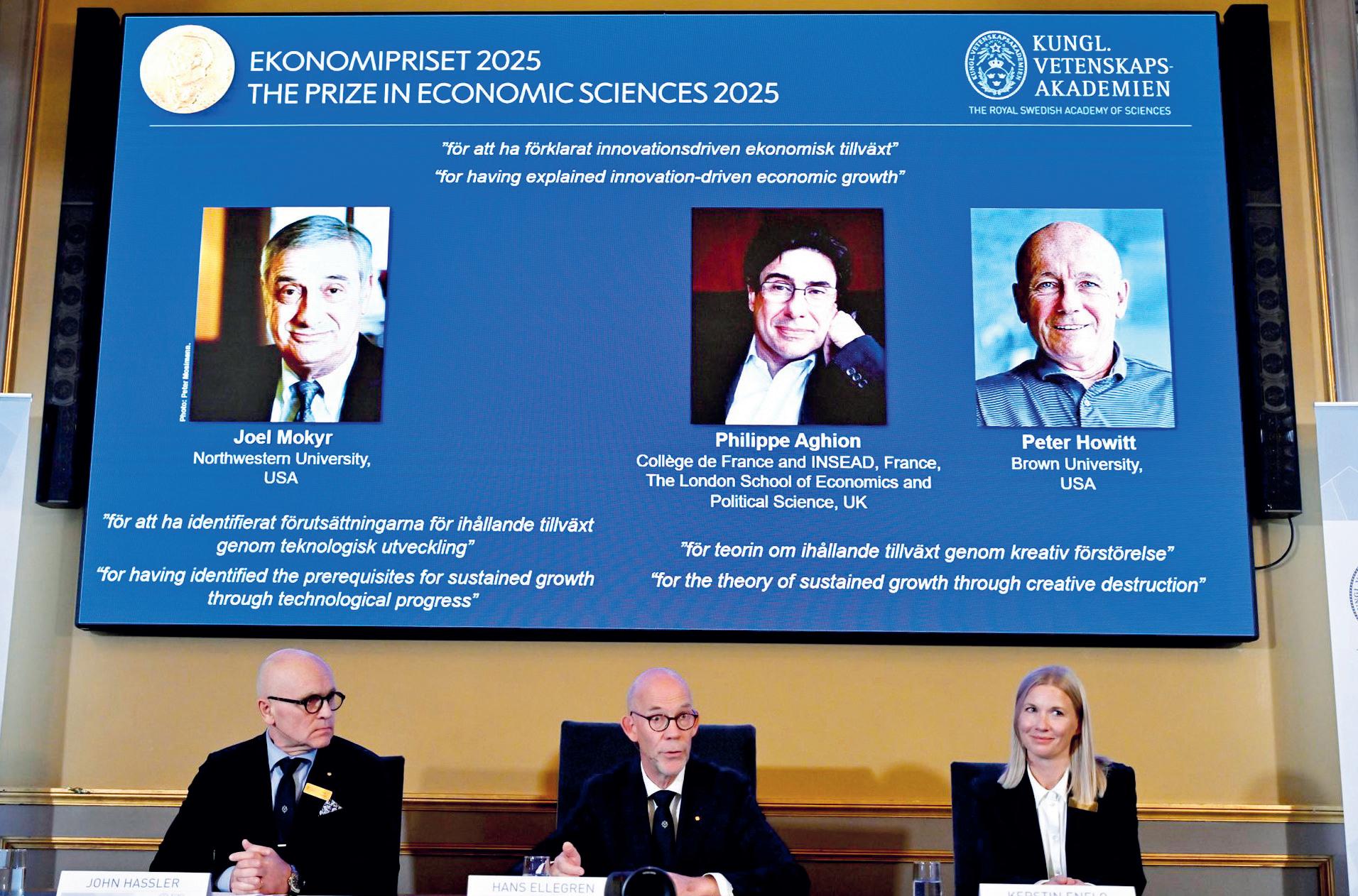 El Premio Nobel de Economía reconoció este lunes al estadounidense Joel Mokyr, el francés Philippe Aghion y el canadiense Peter Howitt por haber explicado el crecimiento económico impulsado por la innovación. Sus investigaciones han ayudado a comprender tendencias actuales y cómo tratar problemas importantes, al tiempo que se demuestra que no se puede dar por garantizado el crecimiento continuo y que es necesario actuar contra las posibles amenazas, destacó la Real Academia de las Ciencias sueca. Nacido en París en 1956 de madre egipcia, Aghion es considerado, junto a Howitt, un pionero del llamado Paradigma Schumpetariano del Crecimiento, una teoría económica que postula el emprendimien-