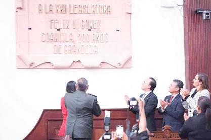 Inscriben con letras doradas en el Muro de Honor del Congreso Local, la leyenda “Coahuila, 200 Años de Grandeza