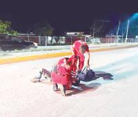 z Atienden servicios de emergencia a motomandados lesionado, tras ser derribado por canes en el fraccionamiento Aurora.