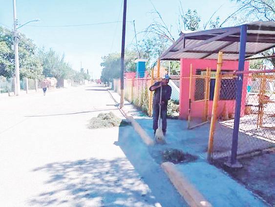 z Personal de Ecología e Imagen Urbana de Nava realiza limpieza en escuelas.