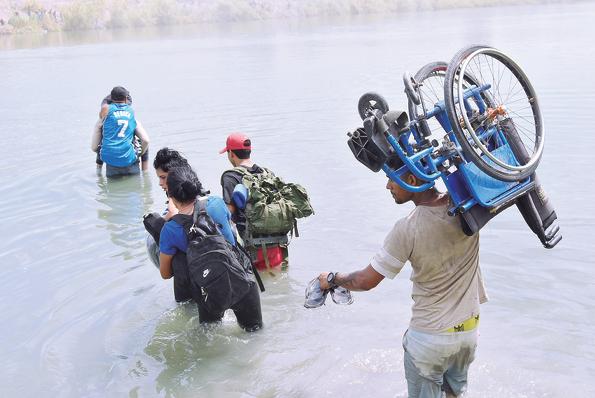 Cruza con todo y silla de ruedas z Sin importar miles de kilómetros de asfalto, tierra, piedras y hasta de rieles de tren, recorridos con su silla de ruedas, Anderson Colinas, de origen venezolano, se aventuró ayer y se lanzó, con ayuda de más migrantes, a cruzar el río Bravo, exponiendo las dificultades que enfrenta por mejorar su calidad de vida.