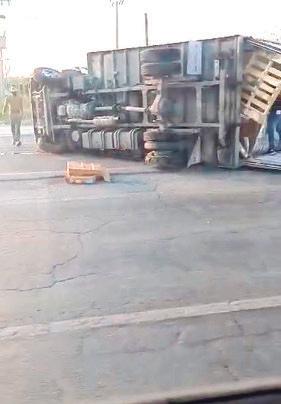Fue durante la mañana de ayer a escasos minutos de las 7:00 horas, a la altura del kilómetro 108, donde terminó volcado un camión de 3 1/2 toneladas que transportaba producto alimenticio, mismo que quedó desparramado en la carretera.